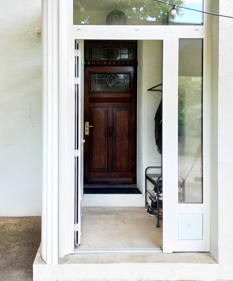 Double joint à frappe sur l’ouvrant et paumelle anti-grincement pour un usage silencieux.